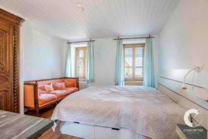 Over the years, the manor has undergone several refurbishments, including a major restructuring in 1987 that created its current configuration: the elegant main residence and an independent apartment suitable for a carataker or guests. Two years ago, further renovation work enhanced the home’s comfort and sustainability. Throughout these updates, the original character has been carefully preserved, with exposed stone, lime-plastered walls, authentic woodwork and traditional fireplaces contributing to its timeless charm.