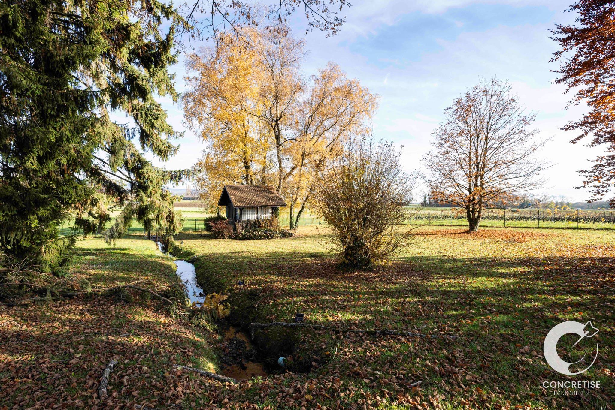 Implantée au cœur de prés et de vignes, la parcelle de 7’837 m², agrémentée de fontaines, d’un étang et d’un ruisseau, compose un véritable havre de paix.