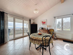 • Espace Jour : Vaste pièce de vie lumineuse comprenant un séjour convivial et une salle à manger, prolongés par une cuisine ouverte entièrement équipée. Accès direct au balcon orienté plein Sud, face au lac.