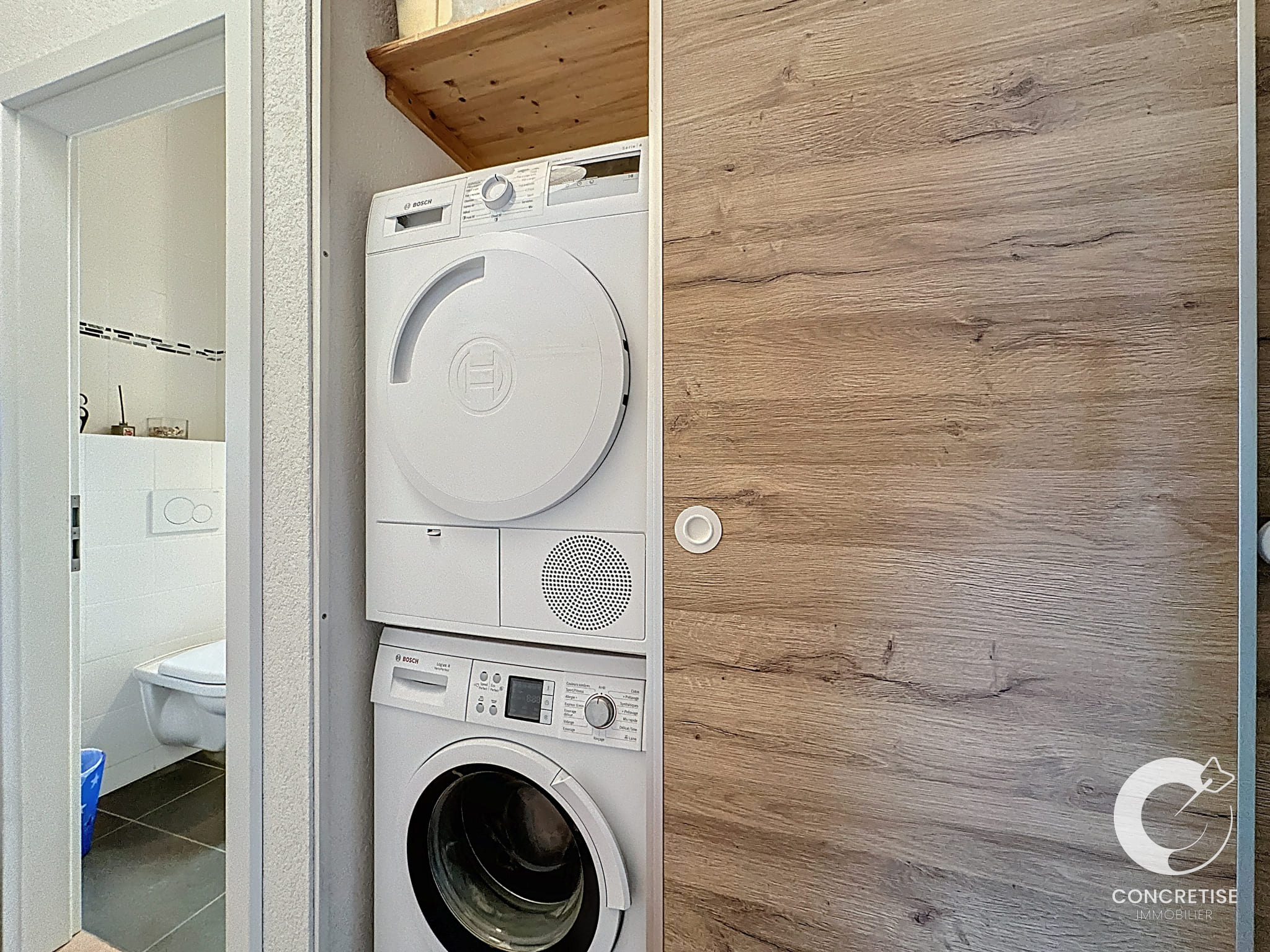 • Praticité : Armoires encastrées et colonne de lavage intégrée dans l’appartement.